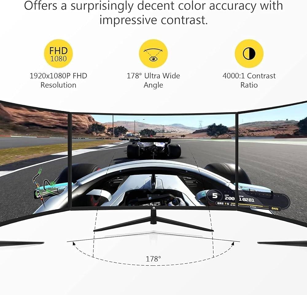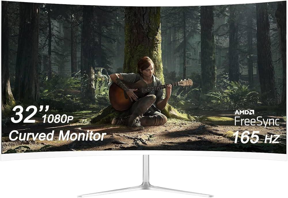 شاشة العاب منحنية 32 انش FHD 1080P 1920x1080 باضاءة خلفية LED، مع معدل تحديث 165Hz (تدعم 144Hz) والعناية بالعين، AMD فري سينك، زاوية رؤية واسعة 178 درجة، 1×DP 1×HDMI Jn(ابيض)
