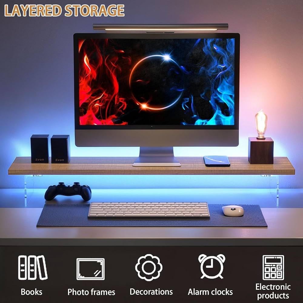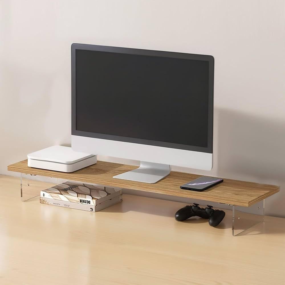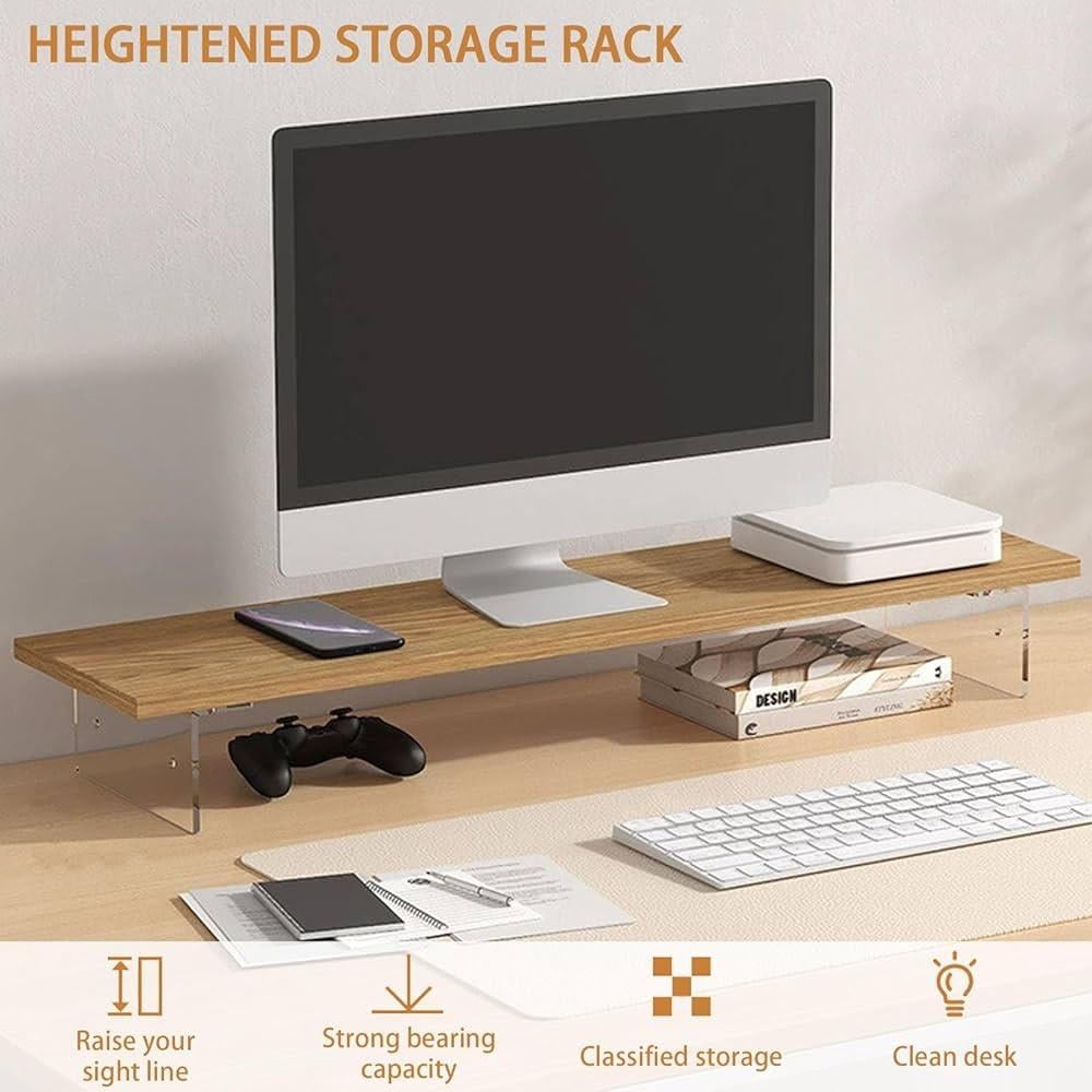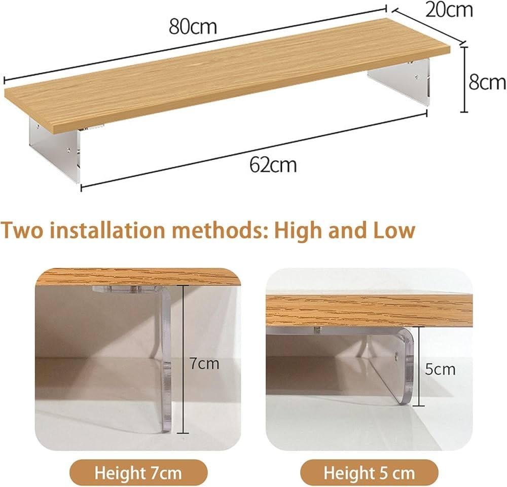 حامل شاشة خشب مقاس 80 سم للمكتب ، حامل لشاشة الكمبيوتر واللابتوب بارتفاع مريح، متوفر بارتفاعين، رف للمكتب مع منظم لوحة المفاتيح